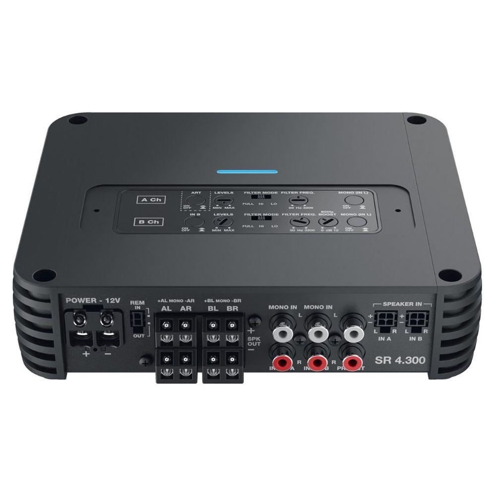 O AV quattro είναι ένας ενισχυτής τεσσάρων καναλιών που μπορεί να λειτουργήσει σε τέσσερα, τρία, δύο κανάλια, παρέχοντας συνολική ισχύ 1700 W (RMS). Έχει σχεδιαστεί για να χειρίζεται περίπλοκες διαμορφώσεις όπως εμπρός / πίσω και πολυκαναλικά συστήματα. Ο AMP (Processor Management Amplifier) ελέγχει συνεχώς το σύστημα κατάστασης λειτουργίας και επικοινωνεί με τον χρήστη μέσω 4 διαφορετικών χρωματιστών λυχνιών LED, που βρίσκονται στην επάνω επιφάνεια του πλαίσιου.Το ART (αυτόματη ενεργοποίηση/απενεργοποίηση απομακρυσμένου ελέγχου) ενεργοποιείτε όταν δεν υπάρχει διαθέσιμο απομακρυσμένο σήμα από την πηγή. έως 24 dB / Οκτ. οι διασταυρώσεις κλίσης επιτρέπουν την κατασκευή εμπρόσθιων οπίσθιων, εμπρόσθιων ή πολλαπλών ενισχυμένων συστημάτων, εξασφαλίζοντας παράλληλα ένα μη φιλτραρισμένο σήμα εξόδου για την επέκταση του συστήματος.
